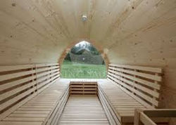 Réalisation en cours : Au cours de l'été 2019, nous allons installer un sauna extérieur "Igloo" en mélèze, avec une vitre panoramique orientée sur la vallée. Le chauffage que nous avons retenu est un poêle à bois. Après le passage dans le fameux bain d'eau froide, vous pourrez vous relaxer quelques instants sur un transat, en toute tranquillité.